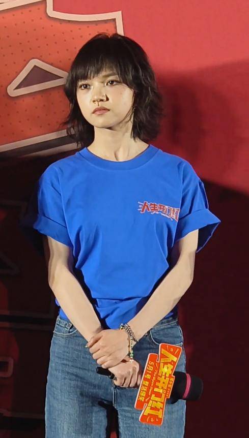 发尾剪得参差不齐,贴在脖颈处,不仅没显得干练,反而衬得她脸型更加圆润,少了几分女星该有的精致感。