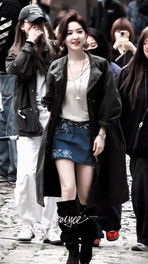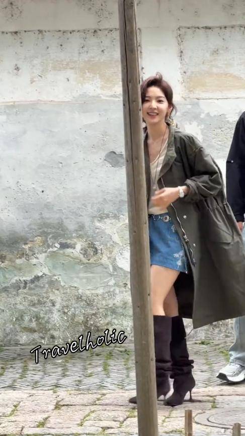 更让人意外的是她的头型,平时在镜头里,她的头脸比例看着很协调,可私下生图里,显得头有点大,和纤细的小腿形成了鲜明对比。