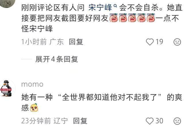上一次直播时,有网友担心宋宁峰的心理健康,怕宋宁峰被她逼到绝路,而她一副“男方怎么样都不在乎”的样子。