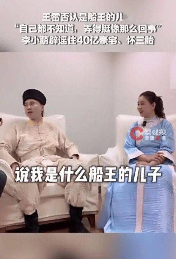 近日,多家自媒体发文称演员王雷是大连船王的独子,每年光分红就有几千万入账,妻子李小萌住着40亿豪宅,家里停着劳斯莱斯。4月23日,据潇湘晨报晨视频综合,王雷和李小萌接受采访并对这些传闻进行辟谣,王雷称:“自己都不知道这些事,弄得挺像那么回事,‘西北锤王’能理解,船王是怎么回事。”同时,李小萌也否认住40亿豪宅,并且表示自己没有怀三胎。