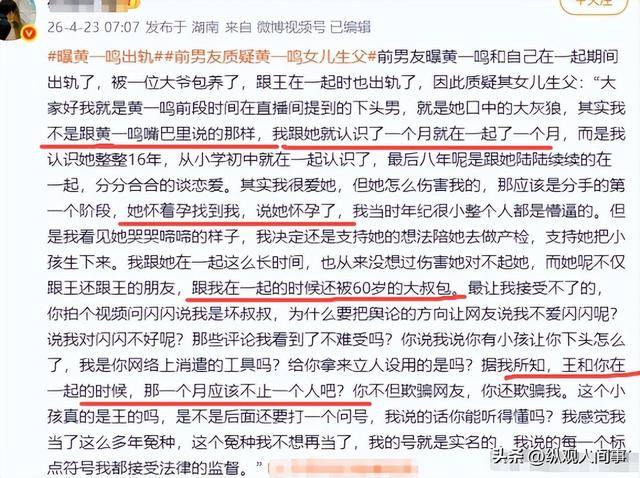 让他无法接受的是,黄一鸣在与他交往期间,不仅和他的朋友有牵扯,还背着他与一位60岁大叔有瓜葛,这番话瞬间让网友哗然。