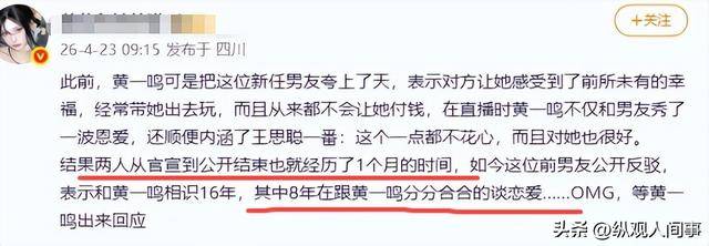 这份岁月静好并未维持太久,随着前男友的一则爆料,黄一鸣的人设彻底崩塌。