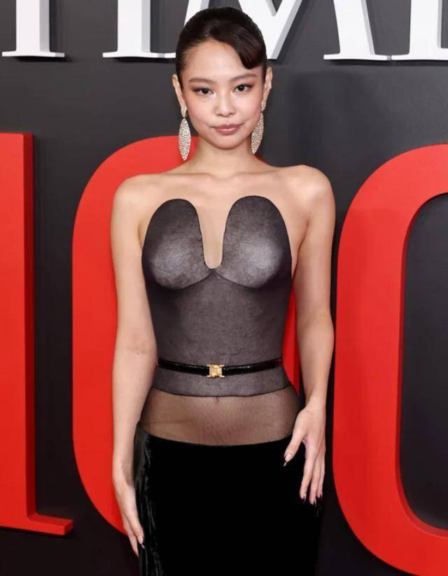 活动当天,Jennie 身穿一袭结构感突出的黑色礼服,吸引了全场目光。大胆勾勒身材线条的轮廓设计,加上透视细节,营造出既高级又大胆的氛围。搭配利落的盘发和华丽耳饰,完成了精致的红毯造型。