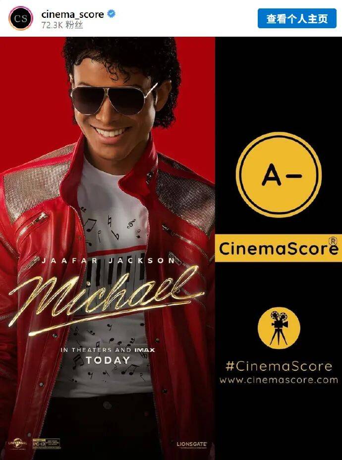 《迈克尔·杰克逊》北美周四提前场报收880万美元,大幅超出音乐传记片纪录保持者《冲出康普顿》的496万美元,含周三场次目前共计1260万美元,首周末票房预测有望高达6500–7500万美元!