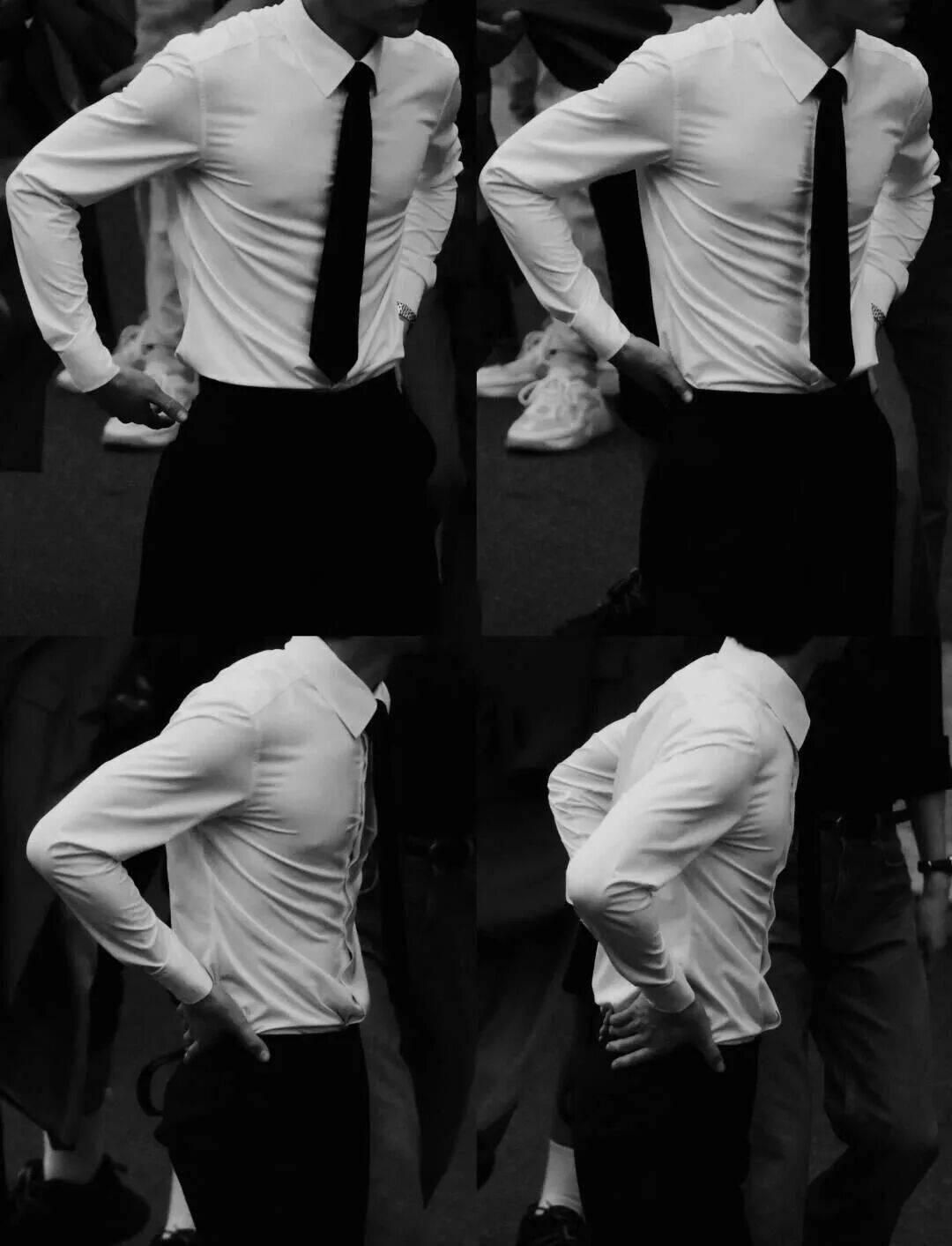 宽肩窄腰,四肢修长,体态挺拔。