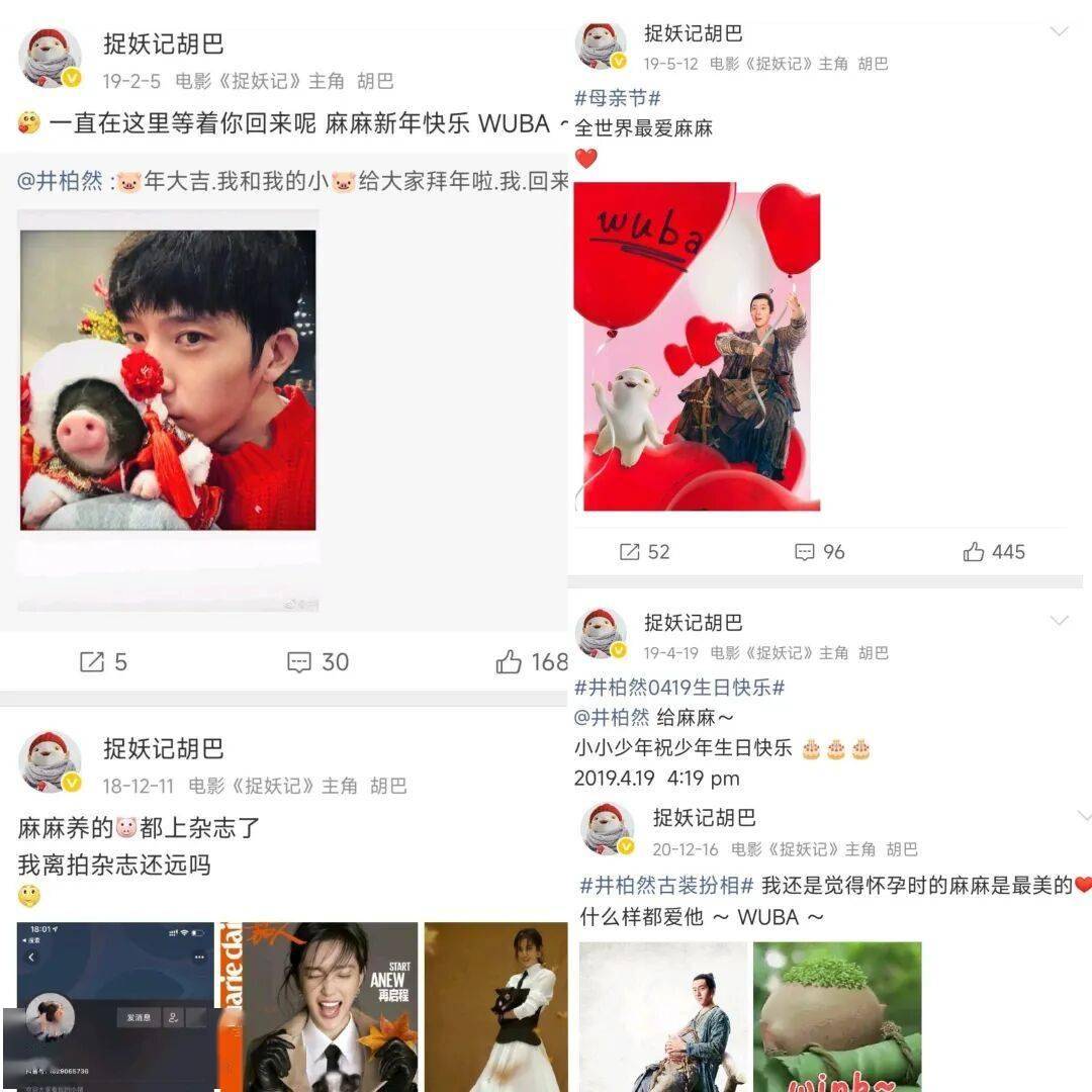 因为井柏然在电影里是生下胡巴的那个人,胡巴年年给井柏然过母亲节。