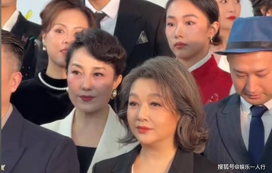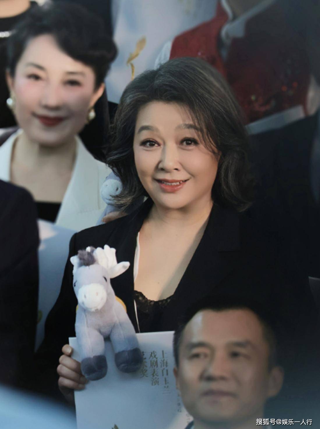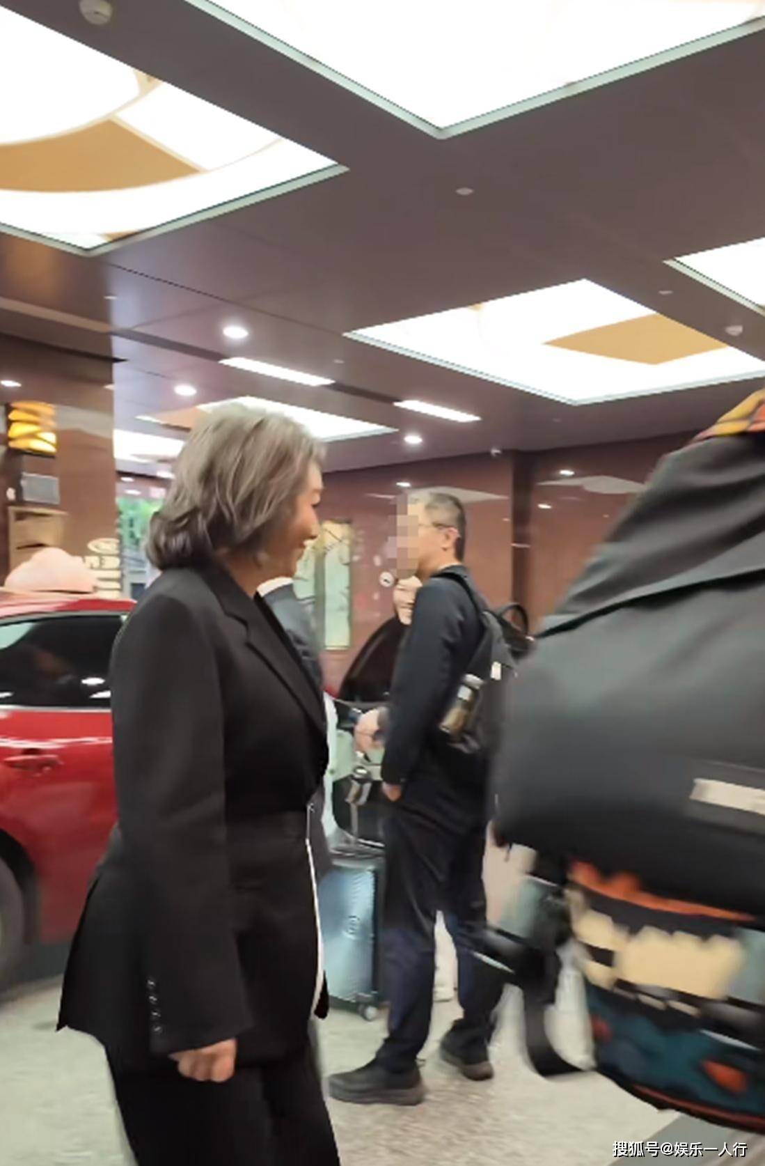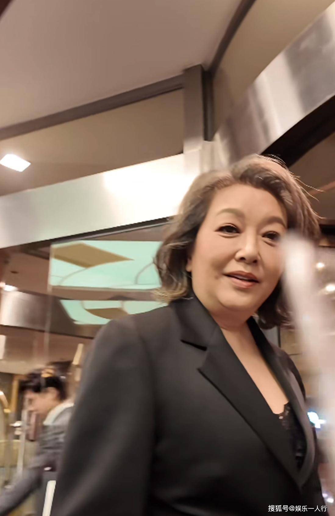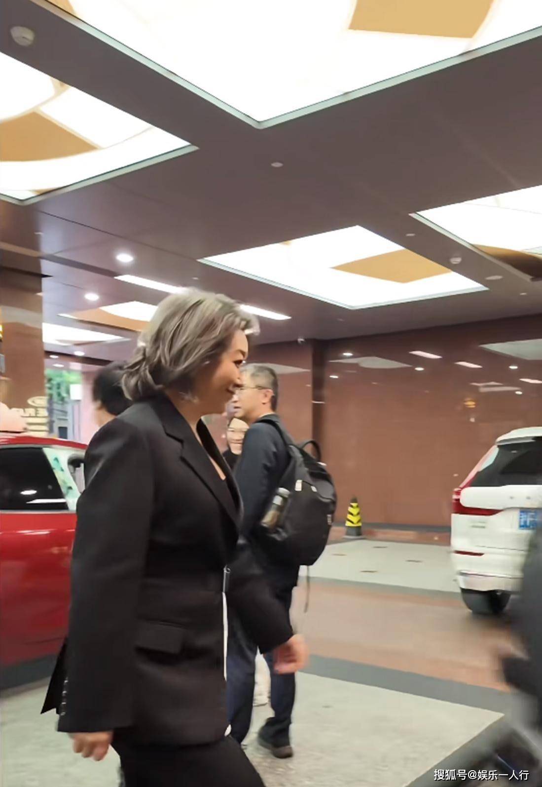 活动当天,她没有选择遮掩身材的裙装,而是套了一身利落的黑色西装。面料挺括,理论上显瘦,但镜头还是诚实地拍出了腰腹的松弛。她也没染头发,灰白的发丝在灯光下很显眼。