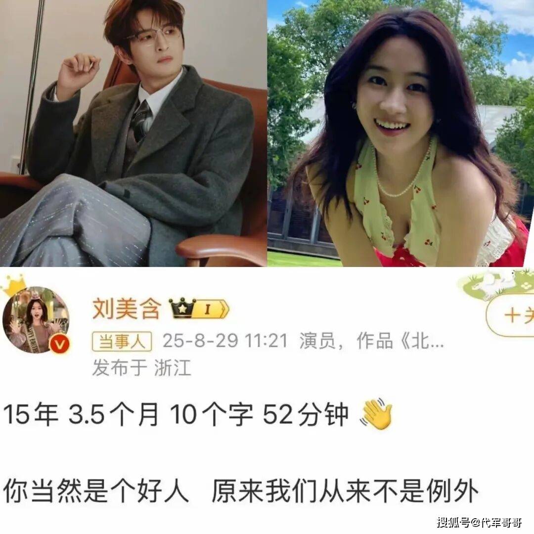 这段跨越多年的友情,在2025年迎来了疑似“升华”与“落幕”的转折。当年七夕,刘美含发布了一条意味深长的微博,“15年 3.5个月 10个字 52分钟 你当然是个好人 原来我们从来不是例外”,这条隐晦的文案瞬间引爆全网,网友纷纷解码其中深意——“15年”对应两人相识的时长,“3.5个月”被推测为恋情持续时间,“10个字”疑似刘美含此前调侃张远自拍“磨皮开太大”的评论,而“你当然是个好人”“原来我们从来不是例外”两句,更是直接对应张远的两首歌曲歌词,种种线索都指向两人疑似开启了一段短暂的恋情,又悄然分手。