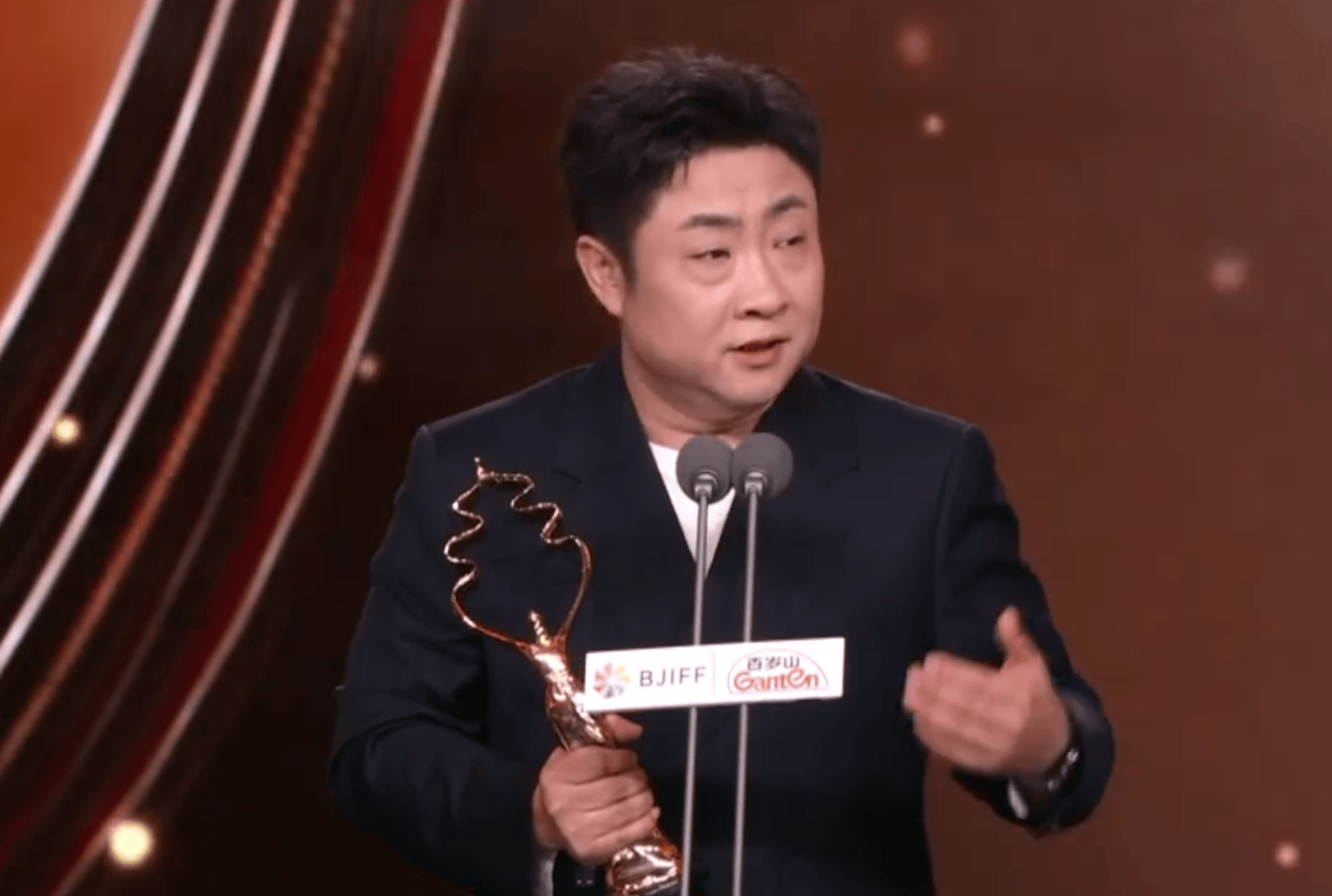 乔杉这几年在有意识的褪去身上的喜感,努力向正剧靠拢,他自知拿奖不易,在台上说“演了20年戏,作为一个喜剧创作者,站在这样的舞台上挺不容易的”他感谢了评委会和电影节,也感谢了《森中有林》的出品方和所有主创。