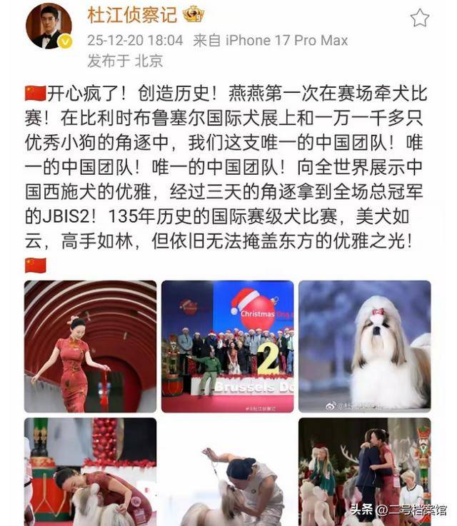 最早她带狗得冠军引起轰动那一场还是在比利时,西施犬霍香香一战封神,在百年赛事里拿全场总冠军,中国原生犬第一次登顶。