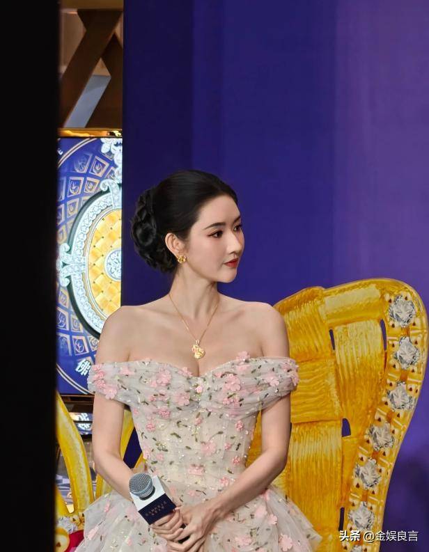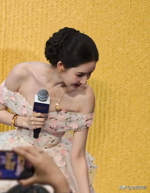 这次活动穿着一身一字肩碎花裙亮相,浅色系的碎花温柔又清新,一字肩的设计露出精致的锁骨,没有多余的修饰,却将她的体态优势展现得淋漓尽致。