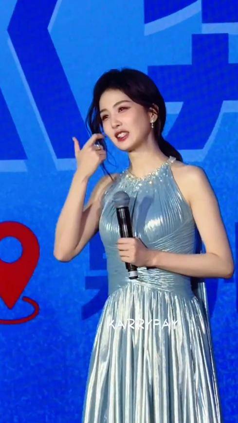 前阵子的电视剧品质盛典上,她穿了一身深蓝色亮片长裙,被网友戏称“把银河缝在了裙子上”。