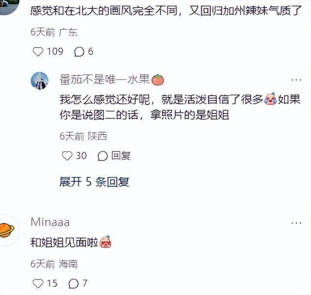 她去美国以后的姐妹合照看着更自信阳光了,照片里都传递出一种很有生命力的气质。