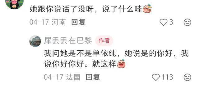 在法国被路人偶遇时,她松弛的顶着一脸素颜,没一点遮掩,有路人给她打招呼,她也会回着互动。