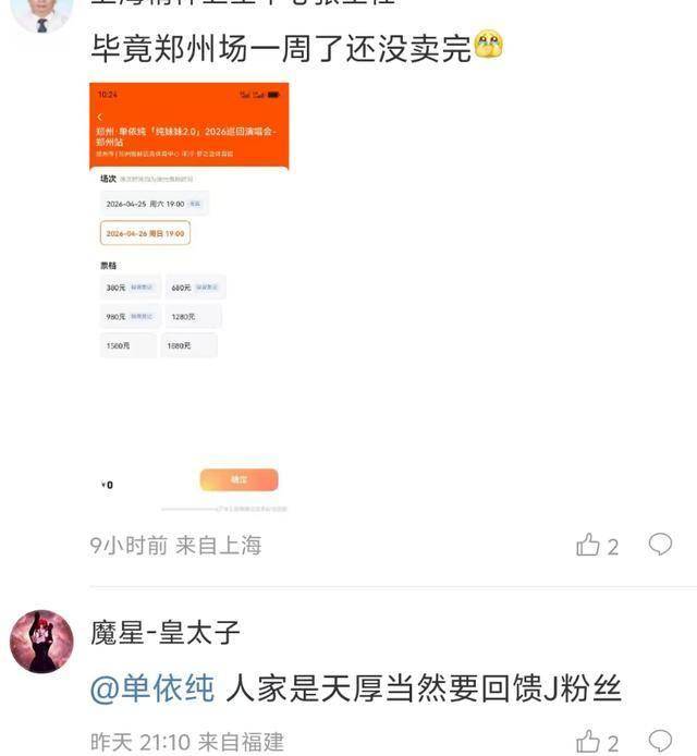 如今的单依纯正在上升期,粉丝正是该鸡血的时候,这个卖票情况反而更显尴尬。