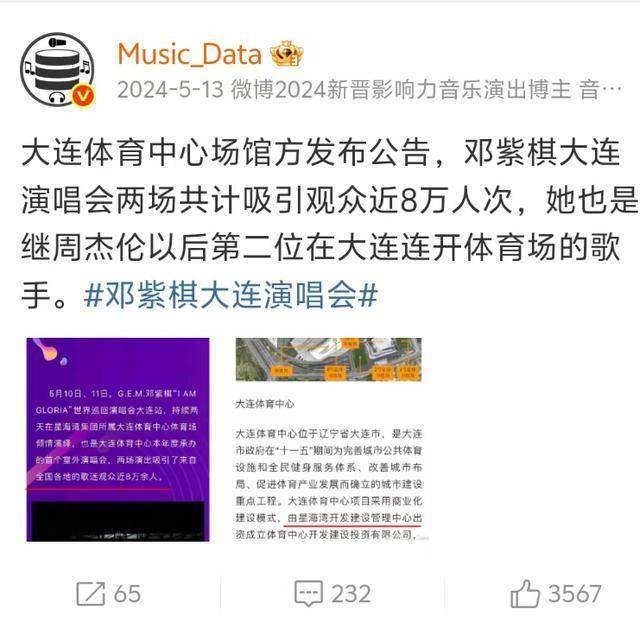 可是被他们拿来挽尊的邓紫棋,前年的大连演唱会还被点名表扬过,人数上数倍多于单依纯这次的演唱会。