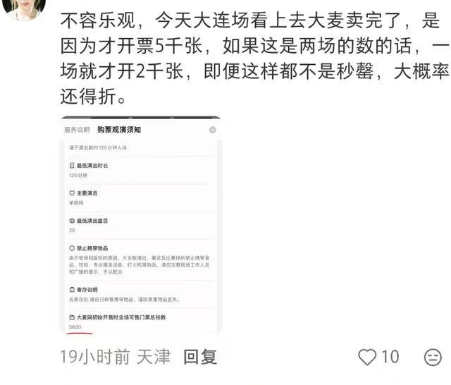 前天开售情况咋一看还不错,迅速售罄——可她这一轮开票一共只放出5000多张,意味着只是放了很小一部分票来试水,这部分票迅速卖完也没办法证明什么。