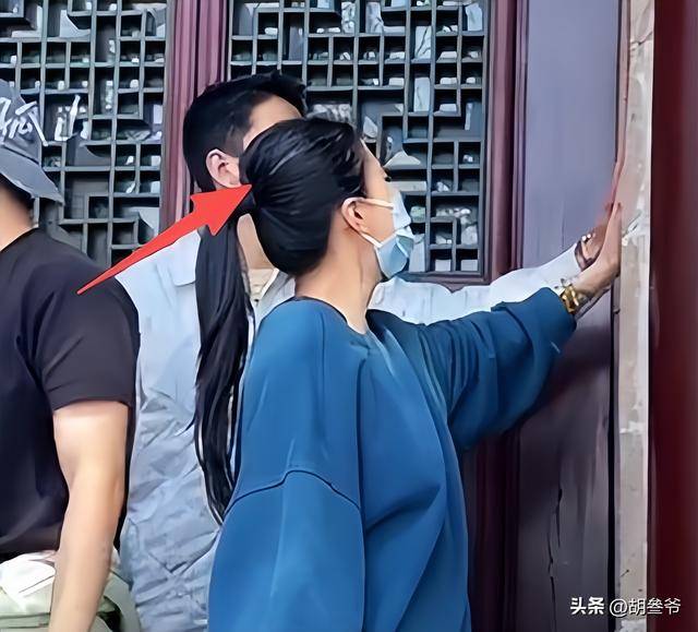 她全程素颜,只戴了一只蓝色口罩遮脸,头发随便扎了个低马尾,没打理、没造型,乱糟糟的贴在脖子上。
