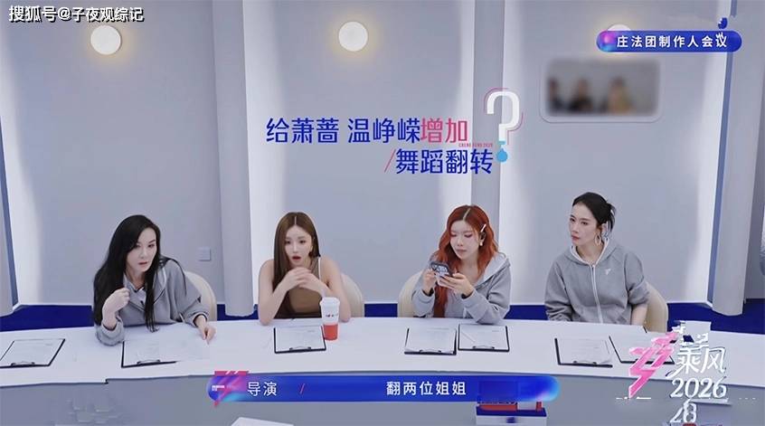 在制作人会议上,庄法和安崎想要给萧蔷和温峥嵘加上舞蹈翻转动作,萧蔷比较厉害,提议把两位姐姐放到彩带炮里发射出去,节目组说做不了, 被否定之后她们换了一个思路每个人在说唱里写一段自己的故事。