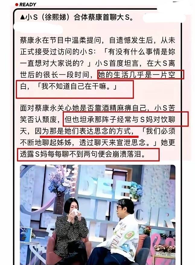 她主持的那搞笑作怪的喜剧三板斧,在姐姐大S离世的巨大悲伤阴影笼罩下,小S再也无法像以前那样开怀大笑了。