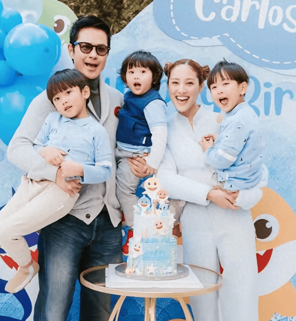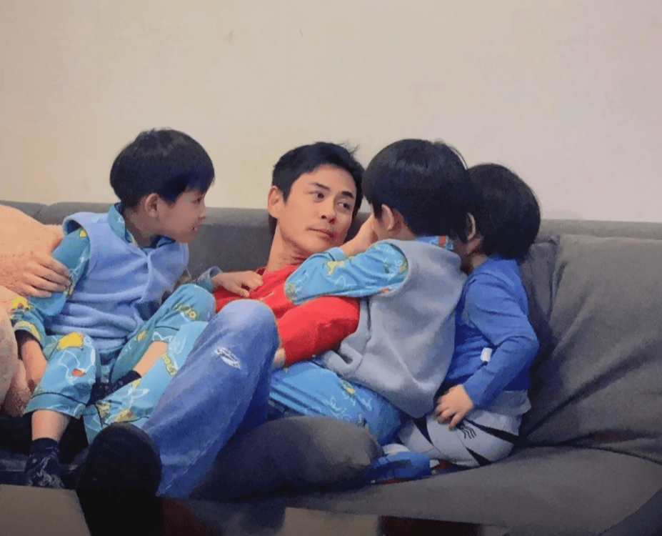 吹蜡烛的时候,三个儿子一起扑上去亲他的脸,奶油糊了他一脸,陈凯琳在旁边笑得直不起腰。