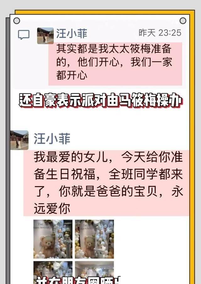 那条朋友圈底下他还自己追评了一段,把功劳全归给了马筱梅,说生日会从策划到布置全是筱梅一手操办。那次庆生,马筱梅做得确实到位,汪小菲也毫不吝啬地表达了对妻子的认可。