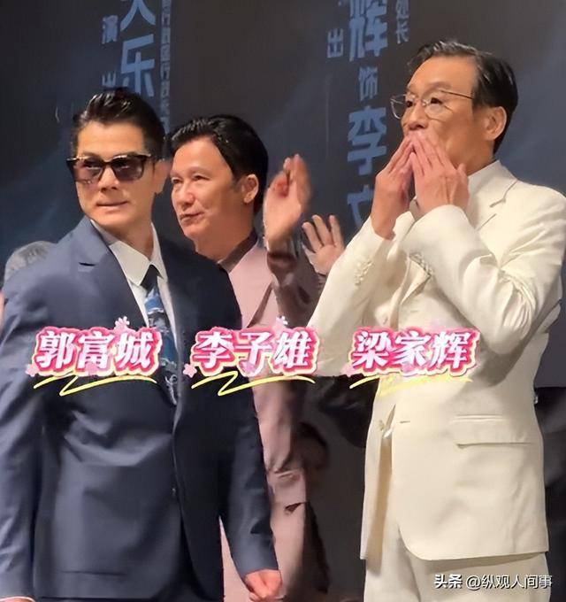 首映礼上还有个有趣的小插曲,周润发和梁家辉趁着郭富城接受采访的间隙,偷偷在他身后模仿他跳舞的姿势,动作笨拙又可爱。