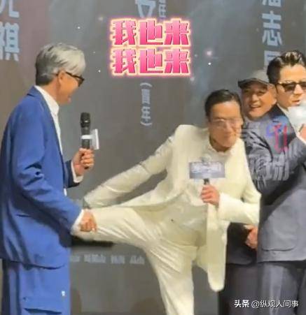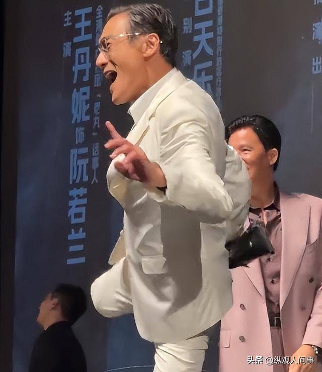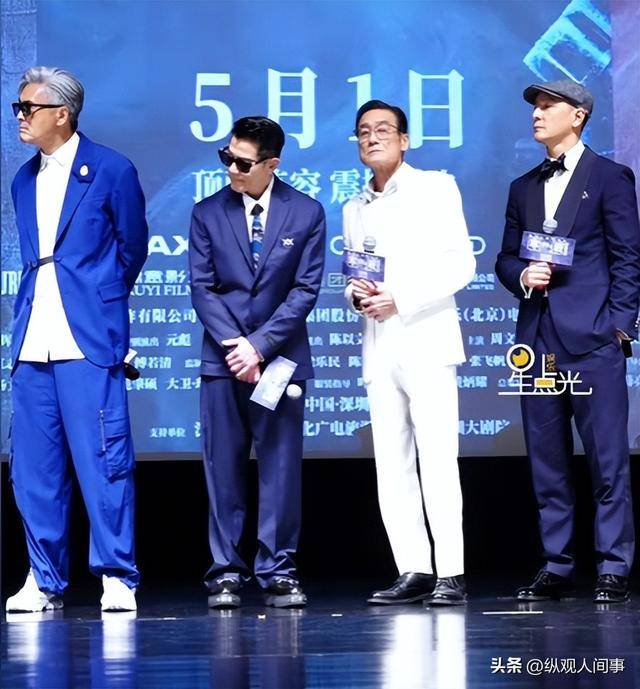 4月26日,也就是被催生的第二天,他就马不停蹄赶到深圳,出席《寒战1994》全球首映礼,与70岁的周润发、68岁的梁家辉同框,三位影帝同台气场拉满。