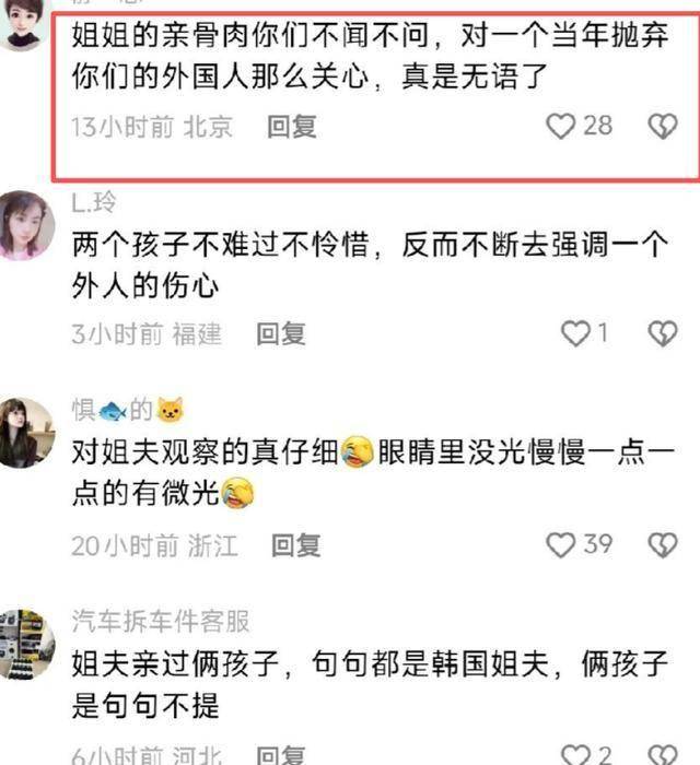 却绝口不提姐姐的两个孩子,让不少网友从中感觉到一点厚此薄彼。