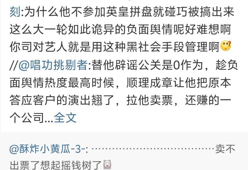 他的公司英皇也在变着花样力捧他,顶着重重舆论,官宣他加入五一节的拼盘演唱会。