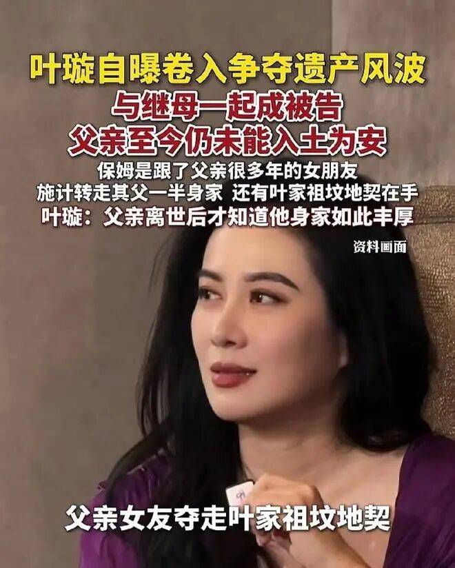 叶璇父亲去世后,与其长期同居的保姆被曝转走其父约一半身家,并持有叶家祖坟地契,导致父亲遗体至今未能下葬。