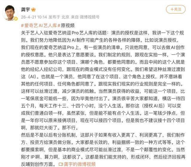 3月底,爱奇艺CEO龚宇自称: