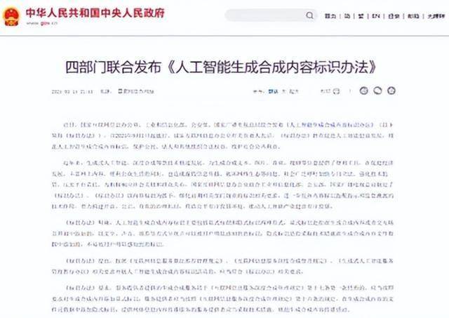 首先最先进场的是2025年9月1日正式施行的《人工智能生成合成内容标识办法》。