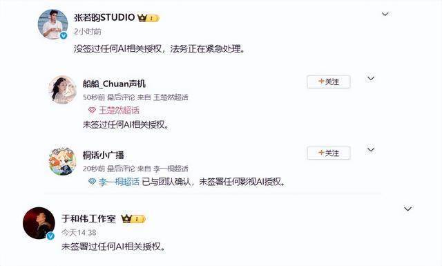 从没与任何所谓“AI艺人库”签署过任何形式的书面协议。