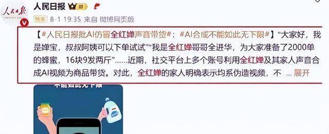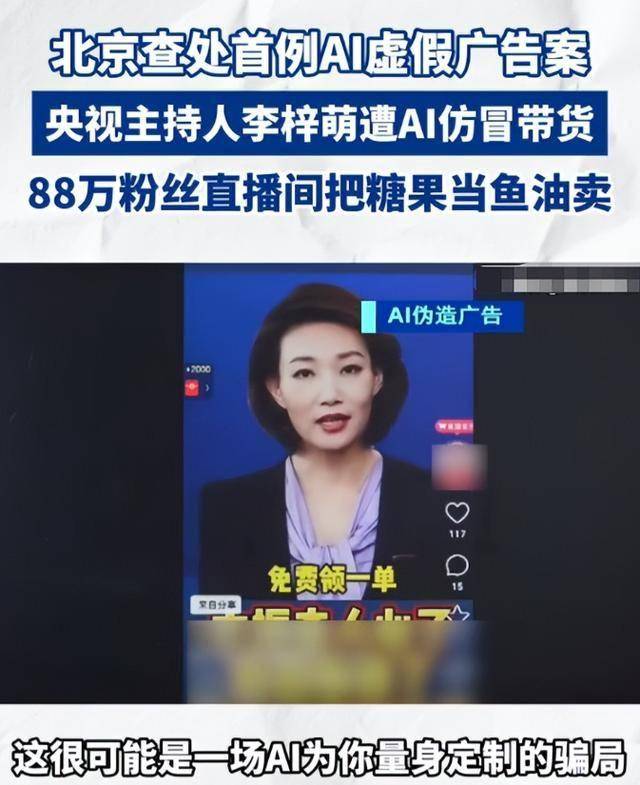 后来查出来才知道,这是骗子花十几块钱,用AI抓取她的新闻片段,换脸加仿声做出来的,这也是北京首例AI虚假广告案。