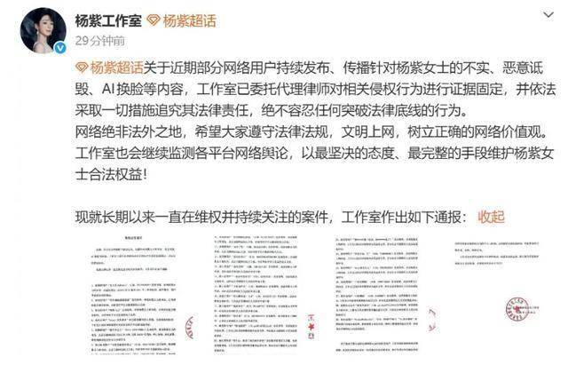工作室直接通报,已经固定了29条侵权证据,全是针对AI换脸、恶意诋毁的。