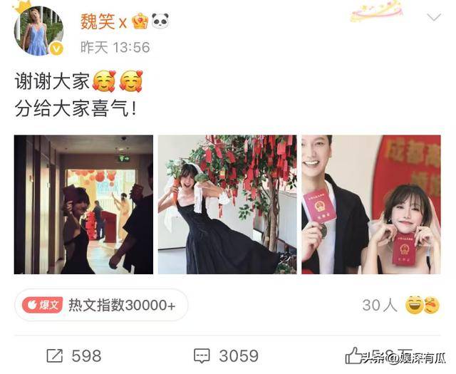 4月26日,演员魏笑结婚的词条瞬间登上热搜榜,不过说实话按照她的咖位正常来说没有太多的关注度。