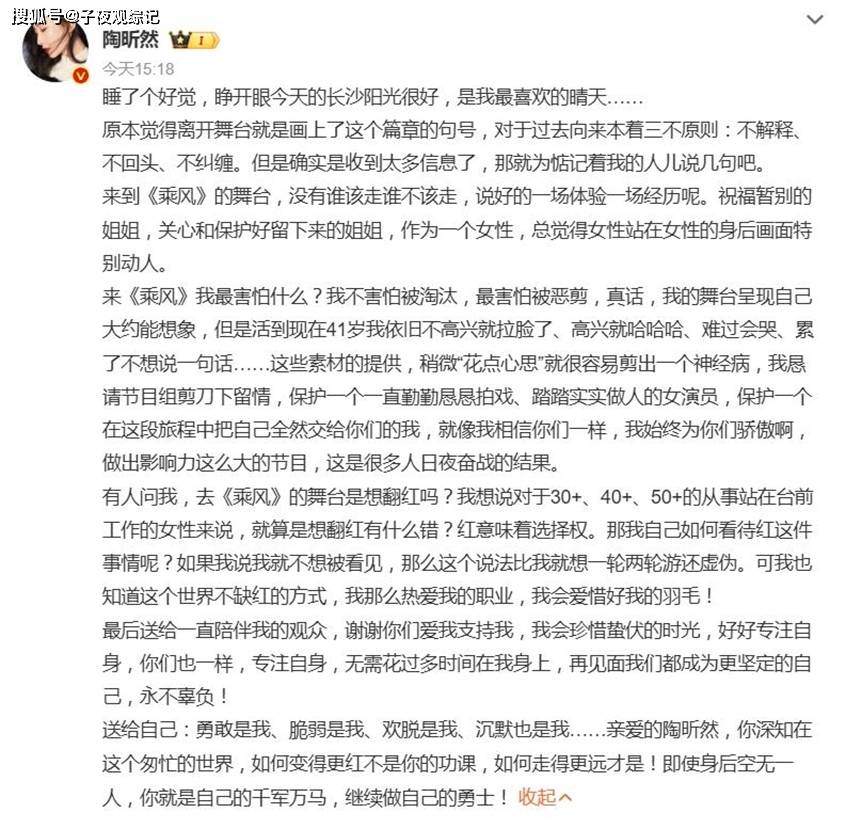 你就想想,要是她真第一轮就被淘汰了,那这趟乘风之旅最大的收获会是什么,或许不是舞台,而是这篇长文带来的路人缘,从安陵容到敢说真话的陶昕然, 这波口碑转变,比重新走红更有价值,有时候,承认欲望比隐藏欲望更有力量。