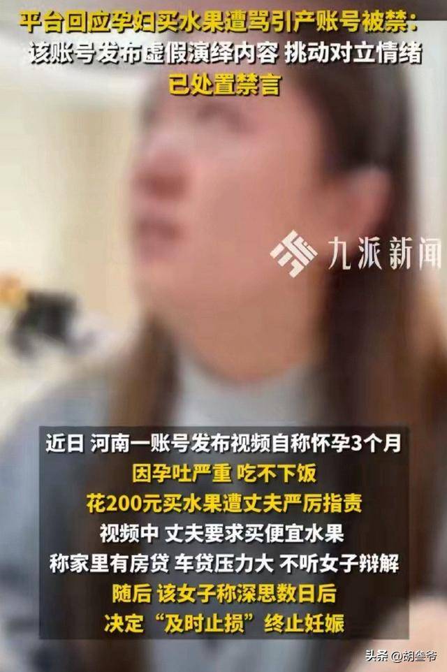 近两日,一条河南女子怀孕3个月、花200块买水果被丈夫辱骂后选择引产的视频,直接炸穿各大娱乐平台。无数网友气得睡不着,骂丈夫冷血、骂婚姻不靠谱。可谁也没想到,不到24小时剧